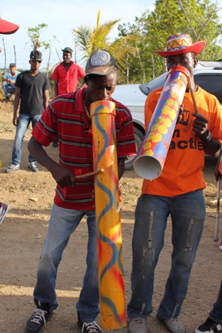 Musicians playing the Bamboo horns of Gaga San Luis, Dominican Republic